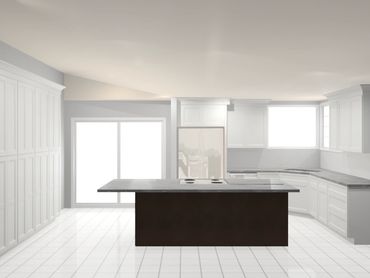 Removed wall and took up small space in living room to create a large kitchen with island and created open living floor plan between entry, living room and dining room