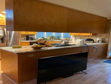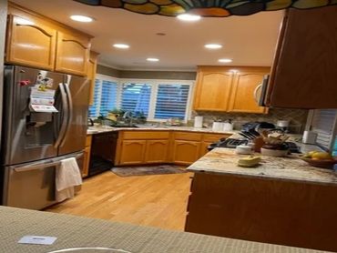 Along with the adjacent kitchen remodel, the living room received updates by enclosing a wall into the kitchen and removing an unnecessary wall next to the fireplace giving an open concept to the home and accenting the beautiful view of the back yard